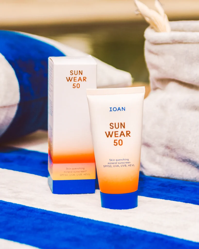 De set bestaat uit IOAN’s Sun Wear 50, een minerale zonnecrème met krachtige antioxidanten en geavanceerde ingrediënten om de huid beschermd, gezond en stralend te houden. Daarbij hoort de Mykonos beach towel van Place Reservee: een royaal strandlaken, met een zachte velvet voorzijde, geproduceerd in Portugal volgens hoge kwaliteitsstandaarden. Niet toevallig is het ook een stijlvolle knipoog naar de Griekse roots van IOAN.